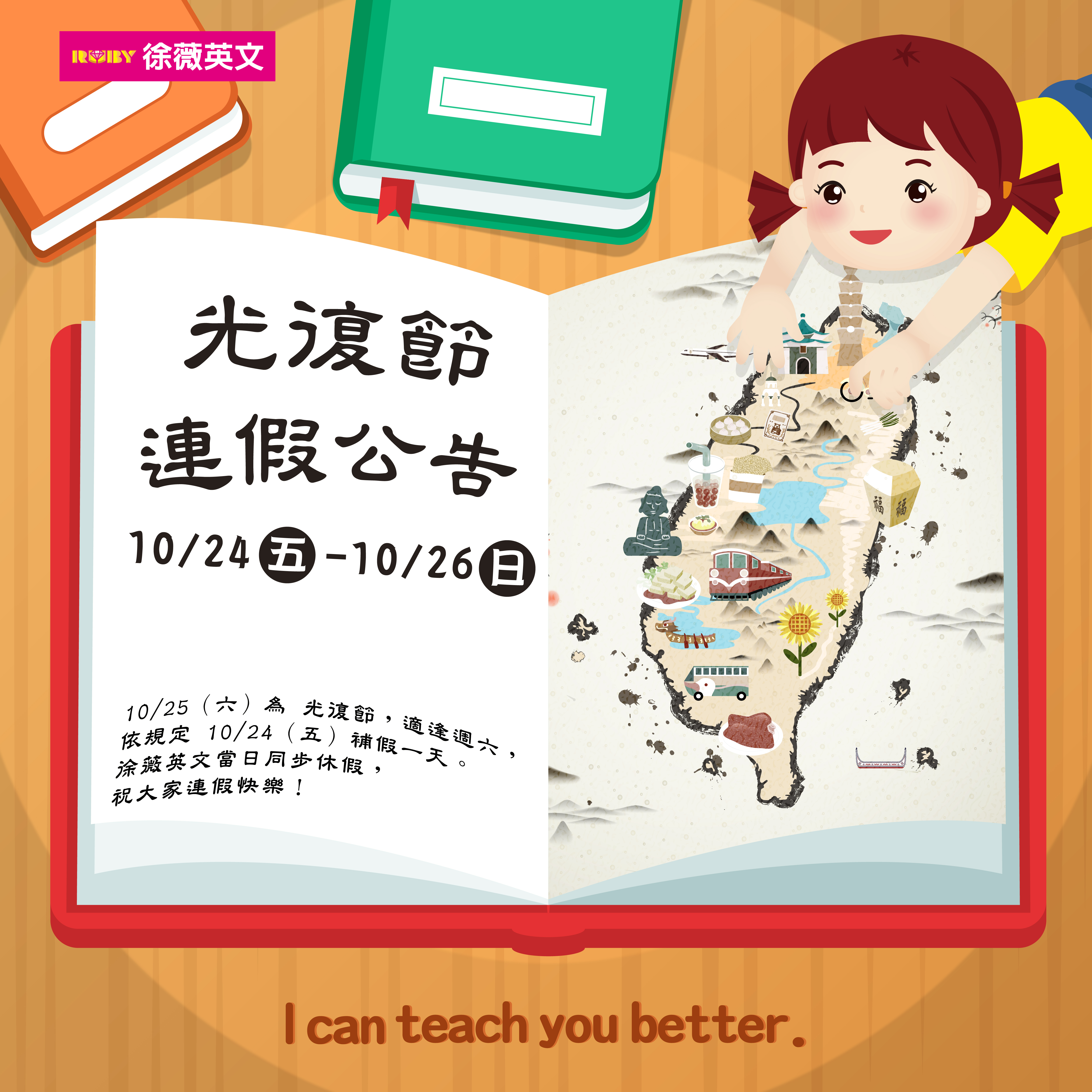 10/24(星期五)~10/26(星期日) 光復節連假三天